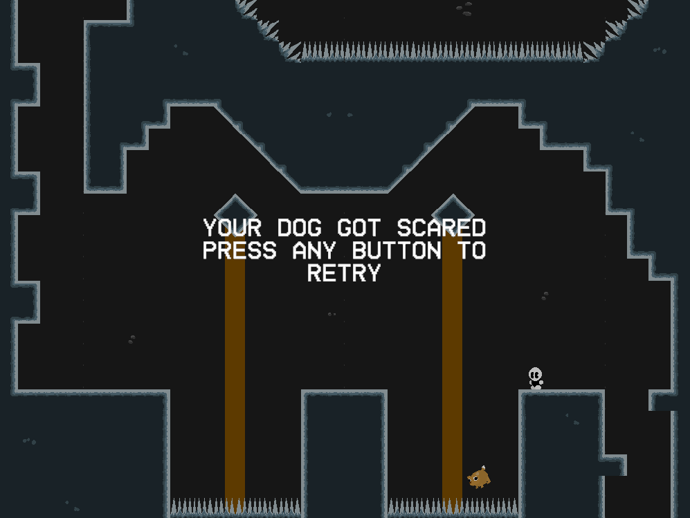 Your dog dug a hole in the wrong spot. The ground collapses and you both fall into a deep cave system! Help your dog up the cave system to reach the surface.